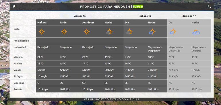 Hacía la noche se espera un leve cambio en las condiciones, con una suba en la intensidad de las ráfagas, que podría superar los 50 km/h. El sábado se mantiene este pronostico, con una día de viento pero buen tiempo. La máxima podría alcanzar los 23 grados.