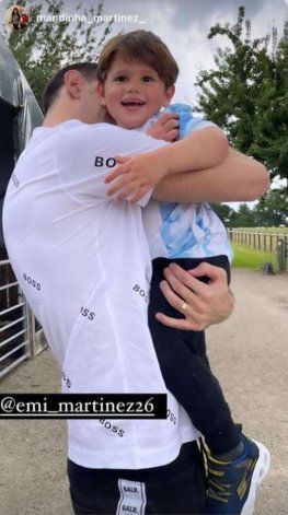 En la imagen el pequeño se divierte pateándole un imaginario penal al Dibu, que disfruta en familia luego de la consagración en el estadio Maracaná de Brasil. Mandinha Martínez, la esposa del arquero héroe fue quien colgó en las redes sociales el video del divertido juego de Santiago, el hijo mayor del matrimonio, la más pequeña se llama Ava y nació durante la Copa América.