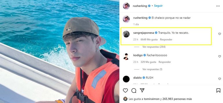 Y antes de todo esto, la pareja siguió demostrándose amor en las redes, cuando el trapero subió una foto a bordo de un yate con la frase: “El chaleco porque no sé nadar”. “Tranquilo, yo te rescato”, fue la respuesta de La China, que velozmente tuvo más de seis mil likes en Instagram.