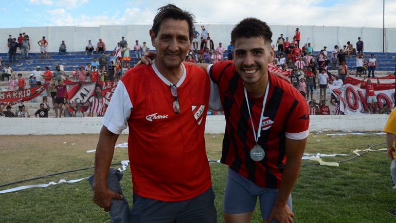 El hombre de mil batallas en el CAI se mantiene sereno (la procesión va por dentro) y respetuoso al margen de la celebración pero a pedido de LM Neuquén va al encuentro de su pibe. Lo felicita, posan para la foto y lloran juntos. El título de Independiente, está claro, queda en familia.