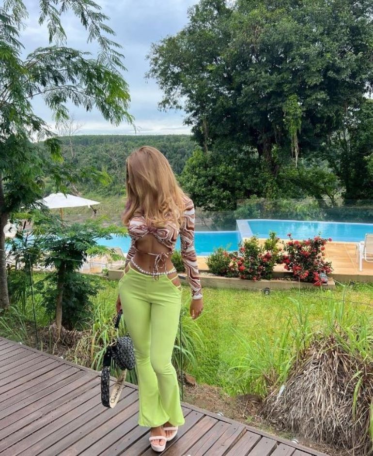 Además, mostró su outfit, el cual derritió las redes. Es que la modelo lució un pantalón palazzo color verde lima. Para la parte de arriba, eligió un top manga larga con distintos tonos de marrón que fue muy elogiado de parte de sus seguidores.