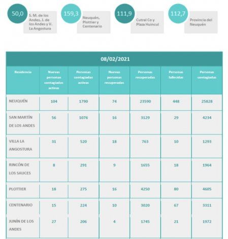 La tasa de duplicación de casos positivos de COVID se aceleró en la cordillera respecto a la capital provincial y sus alrededores. En 50 días, San Martín de los Andes, Villa la Angostura y Junín de los Andes soportarán el doble de casos activos del presente, mientras que en los municipios de la región metropolitana de la provincia la duplicación demandará 159 días.