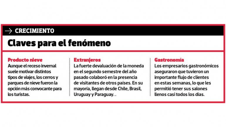 La nieve abundante y la concurrencia creciente de turistas extranjeros explican parte del salto en la cantidad de ingresos de la provincia, que podría aumentar aún más en las últimas dos semanas de julio, cuando comiencen las vacaciones de invierno para los alumnos de la provincia de Buenos Aires.