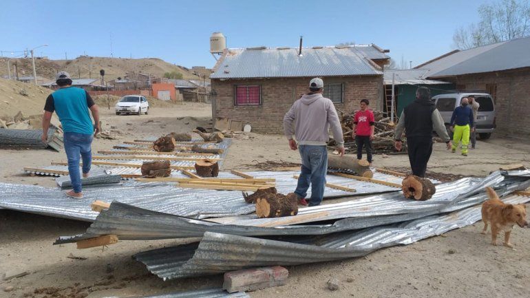 Desde Bomberos se informó también la voladura del techo de la sala de Plástica de la Escuela 135 de Mariano Moreno. La localidad permanece sin energía eléctrica desde las 7 de la mañana por la caída de una línea del alimentador.