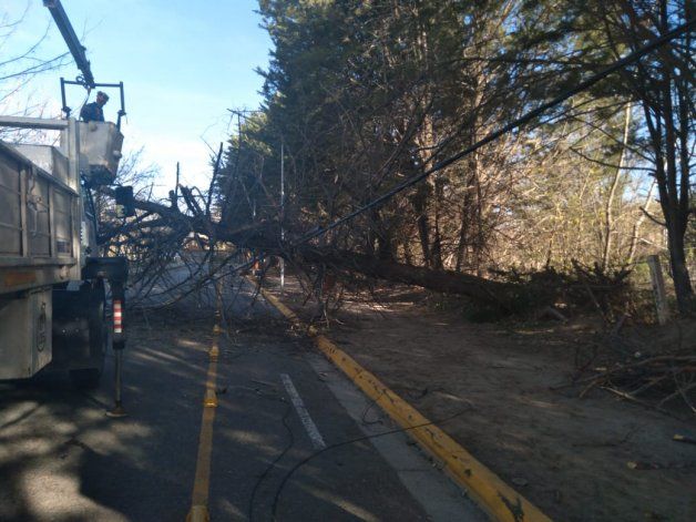 Agregó que otro daño importante que causó el viento fue la caída de un pino enorme, "ubicado en una vivienda particular, en la avenida Olascoaga y calle La Quiaca, que también afectó el tendido de Calf". El árbol arrastró los cables y postes hacia el suelo y quedó tumbado sobre la calzada, arriba de una bicisenda.