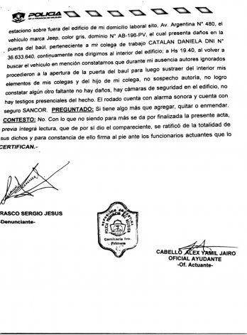 Al momento de realizar la denuncia policial, contó que les manifestaron que “en esa zona no hay” cámaras de seguridad, a pesar de que es un lugar en el que son recurrentes los asaltos.