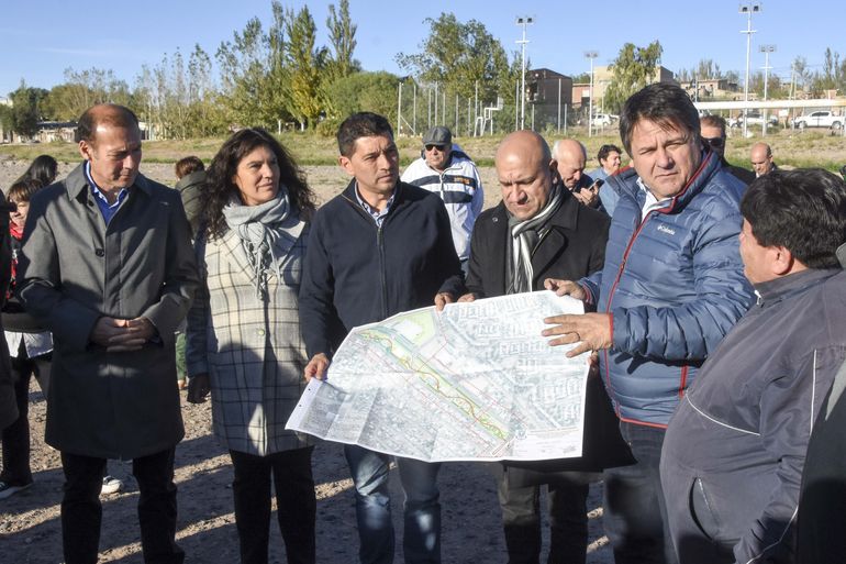 El intendente Mariano Gaido y el gobernador Omar Gutiérrez anunciaron oficialmente el inicio de la obra del parque, que tendrá una superficie de unas 6 hectáreas.