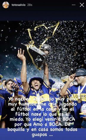 Tras un intenso debate donde mostraron su punto de vista, "Toto" respondió a través de Instagram y no dudó en cruzar a ambos: "Yo nací en un barrio muy pero muy humilde, me crié jugando al fútbol en la calle y en el fútbol no sé lo que es el miedo. Yo elegí venir a Boca porque amo a Boca". Y disparó fuertemente: "De boquilla y en casa, somos todos guapos". Lo cierto es que, más allá de todo, los dichos salieron del propio jugador.