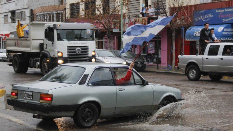 Cientos de cipoleños salieron a las calles para festejar el triunfo de la Selección ante Nigeria en el Mundial Rusia 2018. Los más reacios a la lluvia iniciaron una caravana de vehículos por el centro, mientras que otros optaron por hacer caso omiso a las malas condiciones climáticas y flamearon la bandera argentina con orgullo y emoción.