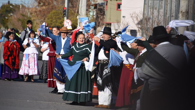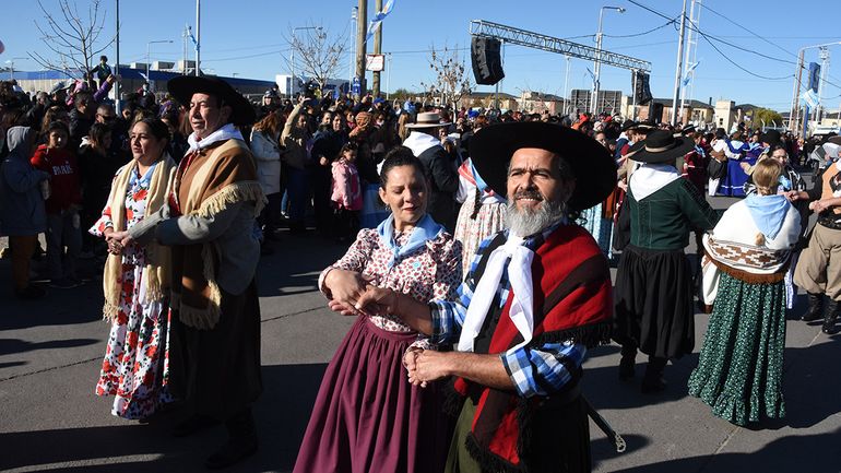 El sol del 25 le puso colorido y calor a la fresca mañana neuquina en barrio Unión de Mayo, sector elegido para los festejos centrales por la conmemoración de la Revolución de Mayo.