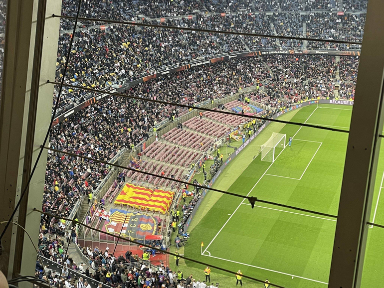 El Camp Nou, el estadio del Barcelona, se vistió de blanco en la definición que el equipo culé jugo frente al Frankfurt alemán. Fueron 30.000 los hinchas del equipo visitante que acudieron a la casa del Barça e hicieron notar su presencia desde el inicio del partido. Con el pase a semifinales asegurado, en el reducto catalán se festejó la clasificación.