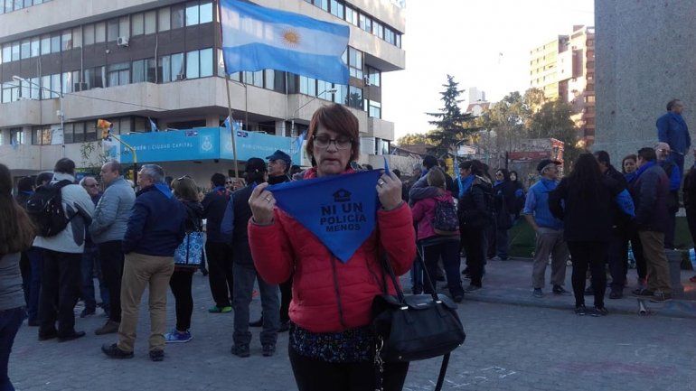 Policías, familiares y personal retirado se reunieron frente al monumento de San Martín con el objetivo de "que respeten nuestros policías, es un tributo a quienes murieron pero, a la vez, que se reivindique el respeto y la dignidad de los policías que están vivos".