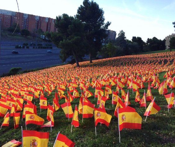 El coronavirus dejó a miles y miles de familias desconsoladas en todo el mundo. Teniendo en cuenta esto, en Madrid, en la madrugada de este domingo, fueron colocadas 53 mil banderas de España sobre el césped del parque Roma, junto a la M-30, para homenajear a los fallecidos por la enfermedad, desde el inicio de la pandemia. La imagen es imponente y sobre todo muy triste.