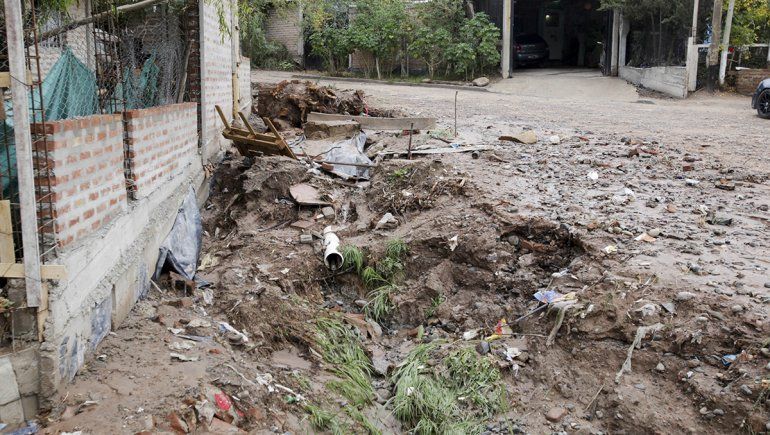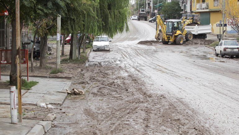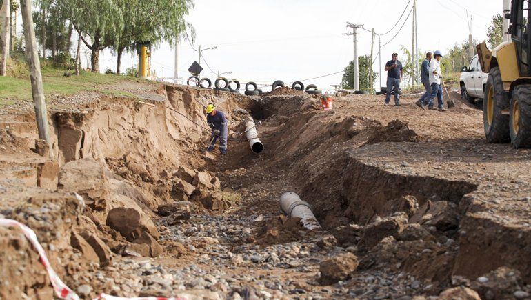 Un día después del diluvio en Neuquén, en la zona oeste permanecen enormes surcos en la tierra y, en algunos casos como en la calle Crouzeilles, la tierra está literalmente partida en dos. Producto de esto, se rompió un acueducto y siete barrios quedaron sin agua.