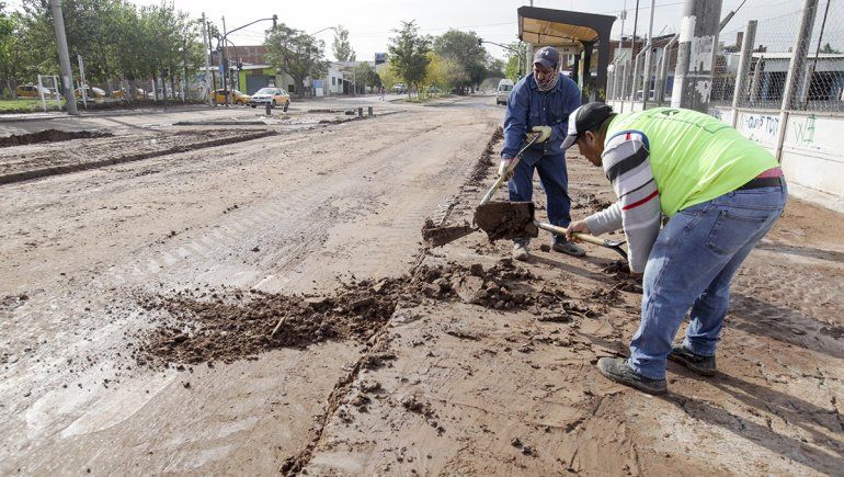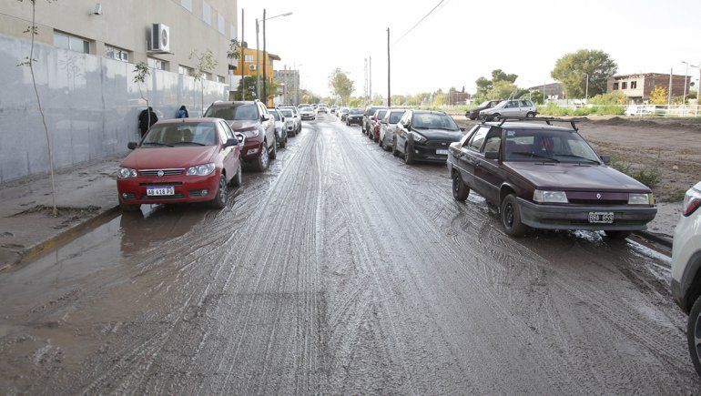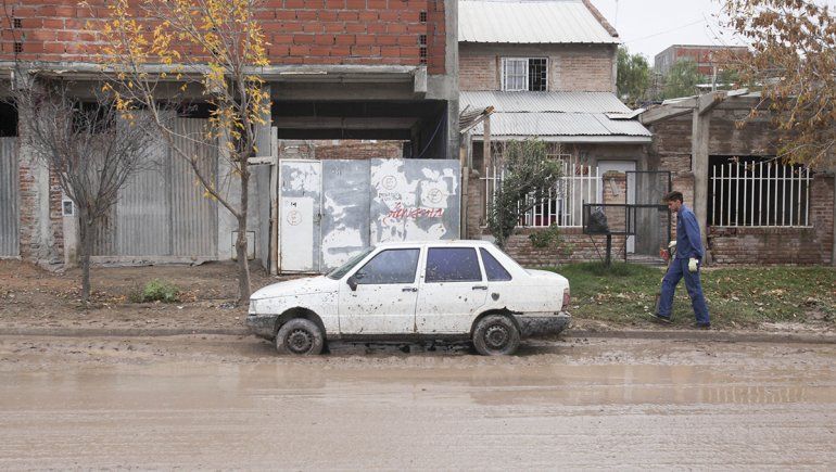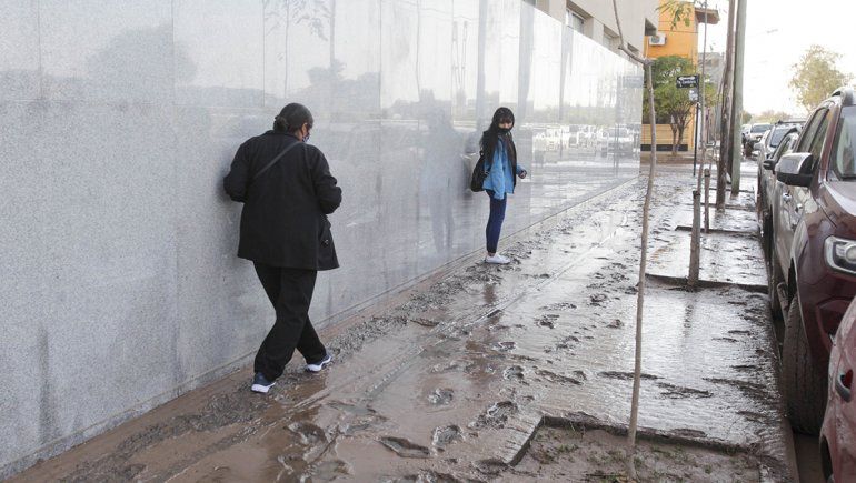 En la ciudad no se distingue entre calle y vereda: todo es un cúmulo de barro húmedo y, en algunas zonas, charcos enormes de agua que todavía permanecen y no alcanzaron a ser absorbidos por el suelo. Muchas calles quedaron anegadas y, mientras duró la tormenta, se convirtieron en ríos donde vehículos, ciclistas y transeúntes intentaban circular, sorprendidos por el temporal que se desató de un minuto a otro.