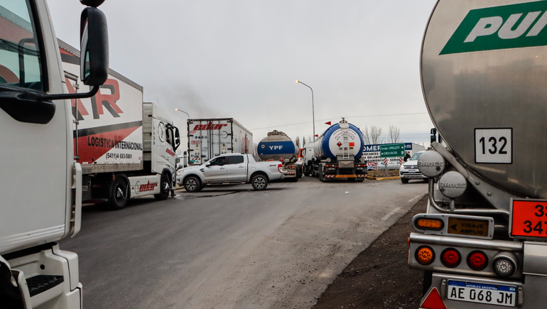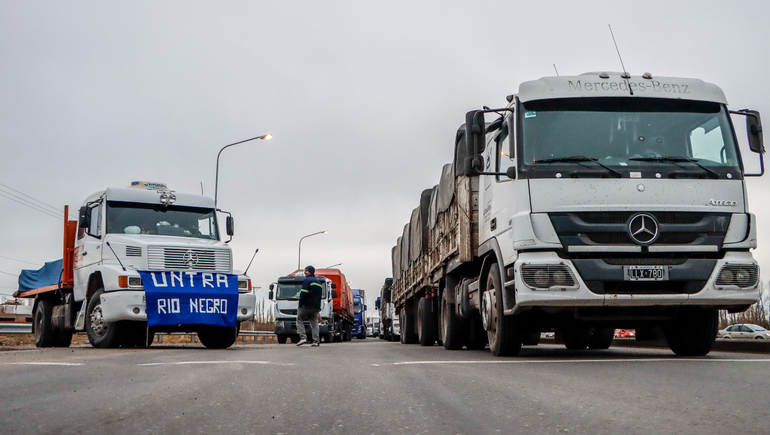 Largas filas de camiones, transportando desde mercaderías a combustibles, fue el común denominador de este martes en la Ruta Nacional 151, próximo al tercer puente, y sobre la Ruta 22, en cercanías al puente que une Cipolletti con Neuquén.