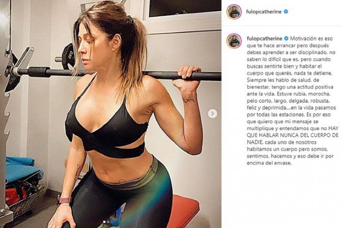 “Cuando los talles dejen de ser tapa de revista... habremos logrado construir una sociedad mejor”, finalizó su posteo en Instagram Catherine Fulop, con dos fotos que deslumbran a los internautas.