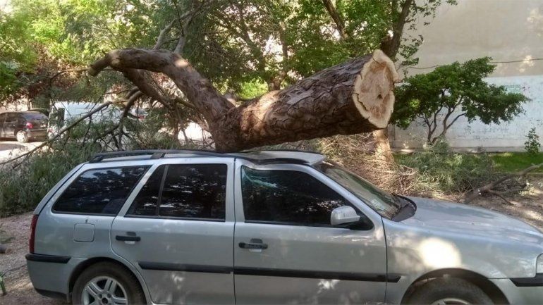 En horas de la tarde las fuertes ráfagas de viento (que alcanzaron los 77 kilómetros por hora) tiraron seis árboles en distintas zonas de la ciudad, y trabajadores de Defensa Civil asistieron para retirarlos y ayudar a los vecinos. Uno de los árboles cayó encima de un auto que estaba estacionado en Avenida Argentina e Islas Malvinas.