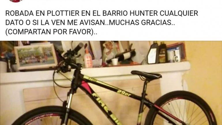 Así como la vecina, todas las víctimas, hayan denunciado o no, postean sus bicicletas con una breve descripción de lo sucedido en distintas redes sociales, ya sea en sus perfiles o en los grupos de compra y venta. El objetivo es alertar al resto de los vecinos para que, en caso de ver su rodado en la calle o que alguien más lo ofrece a la venta, les avisen.