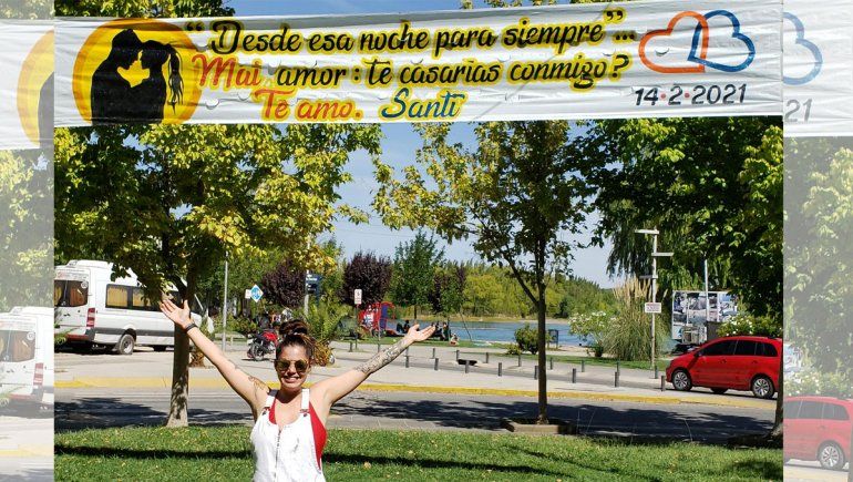 En pleno día de los enamorados, Santiago Sabatini le propuso a su pareja casamiento de una forma poco tradicional: colgó un pasacalles pidiéndole matrimonio en un boulevard del Paseo de la Costa. “Desde esa noche para siempre”, dice el cartel, con el que Maira Riffo le dio el sí al hombre.
