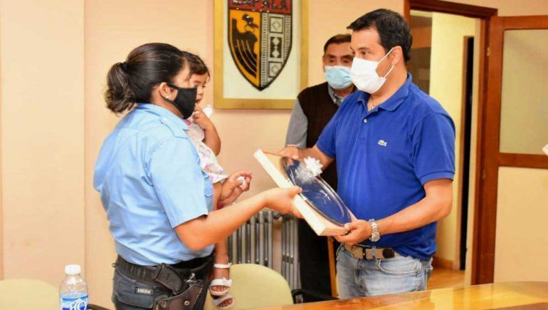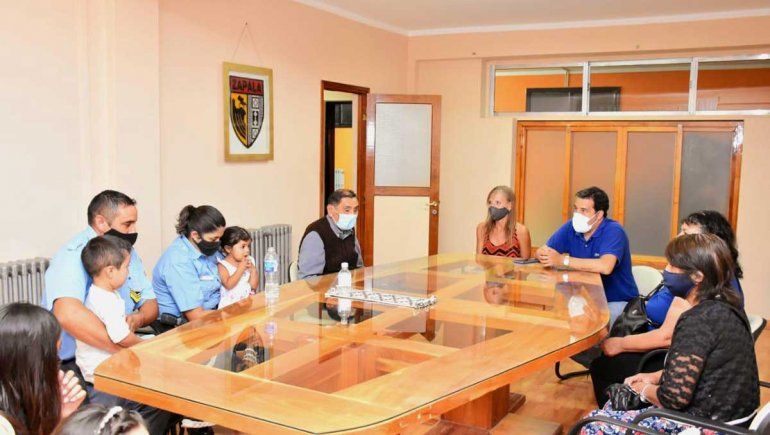 Por esa valiente acción, y por haber demostrado una vocación de servicio sin igual, es que el gobierno de la Municipalidad de Zapala a través de su intendente Carlos Koopmann y la secretaria de Gobierno, Belén Aragó, se reunieron este lunes con la pareja de policías y sus familias con la intención de tributarle un sentido homenaje y aprovecharon para entregarle placas de reconocimiento por la heroica acción concretada.