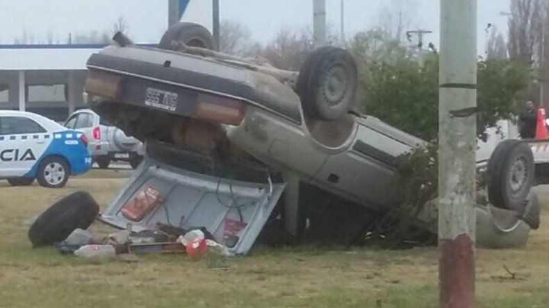Un automóvil Peugeot 505 terminó con sus cuatro ruedas hacia arriba luego de protagonizar un autovuelco en la rotonda de acceso a Plottier.
