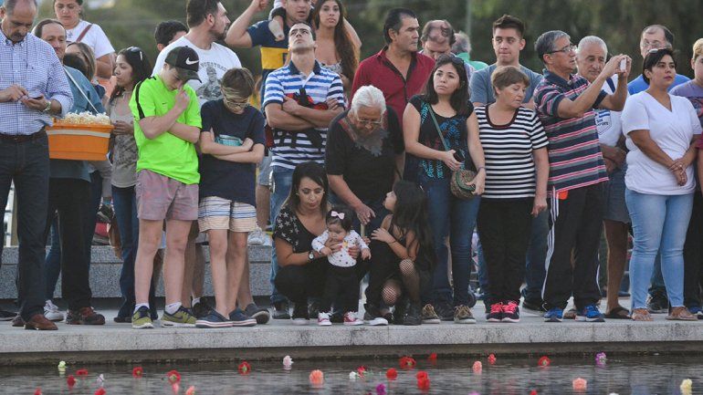 Tras los discursos, se arrojaron 649 claveles a la fuente del cenotafio en homenaje a los caídos en la guerra del Atlántico Sur.