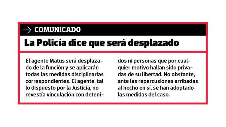 Neuquén. Un nuevo escándalo policial estalló en la cara del gobernador Omar Gutiérrez. El Gobierno está indigando y la Policía anunció mediante un comunicado el desplazamiento del agente Luis Matus tras dar a conocer este medio el caso.