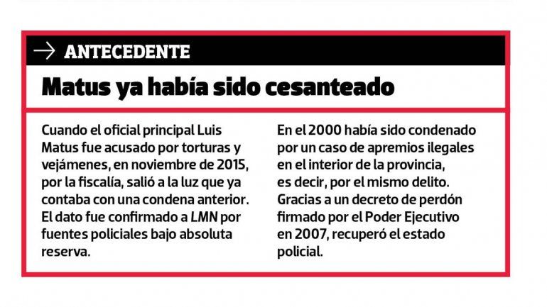 Lo cierto es que el martes al mediodía, en la inauguración del Centro de Análisis Estratégico sentaron a Luis Matus, condenado a tres años de prisión en suspenso por apremios ilegales, al lado del gobernador y del jefe de la Policía, Rubén Tissier.