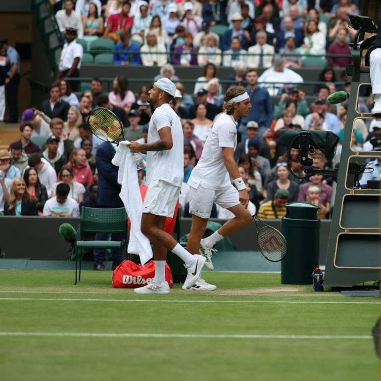 Nick Kyrgios derrotó a Stefanos Tsitsipas en un partido que tuvo de todo: pelotazos al público, sanciones, peticiones de despidos, saques de abajo, caídas y golpes sucios. El australiano se impuso por 6-7 (2), 6-4, 6-3 y 7-6 (7), para volver a octavos de final de Wimbledon seis años después.