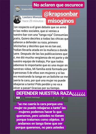 "¿Me estás jodiendo, Krapson? Supongo que esto es una joda", comentó una internauta, que compartió la imagen y fue denunciada por miembros del staff. "Sin palabras, San Pedro cada día me das más asco y vergüenza, apología a la violación, al machismo, a tomar a la mujer como objeto sexual para el disfrute del otro", publicó otra mujer. "Un asco, basta de cosificarnos. No somos tu producto de marketing", añadió otra seguidora de la cuenta que el boliche tiene en Instagram.