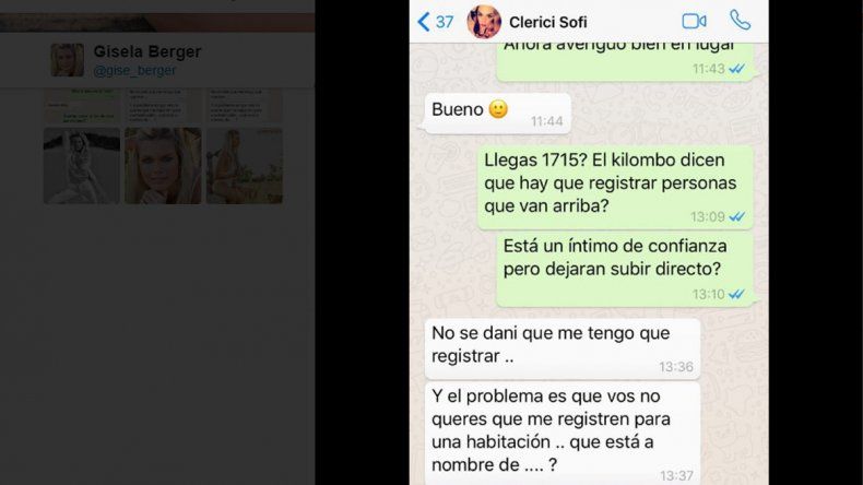 Berger difundió algunas charlas entre Scioli y Clérici, en las que arreglan algunos encuentros y se envían fotos, y dijo que el ex gobernador de Buenos Aires decía que se iba a jugar al fútbol o a una reunión de trabajo.