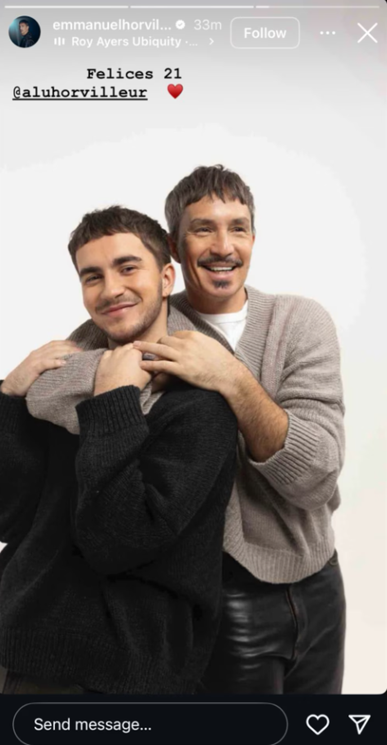 Minutos más tarde fue Emmanuel quien tomó la posta. El exlíder de Illya Kuryaki and the Valderramas y actual solista compartió una foto de antaño, en la que André, disfrazado con una gorra de peluche, mira fijo a la cámara y apunta con su dedo. El mensaje que acompañó la postal fue breve pero cargado de sentido: “Felices 21 André Horvilleur”, acompañado por un corazón. Más tarde, publicó otra imagen actual, donde aparece abrazando a su hijo ya adulto, reflejando orgullo y cercanía.
