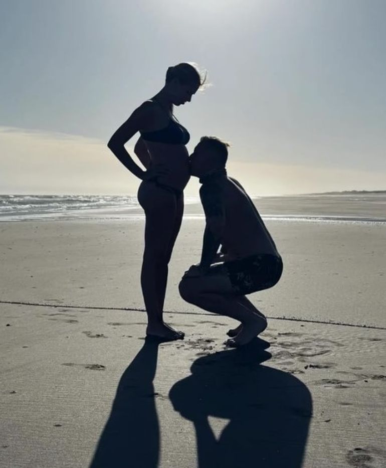 A dos meses del anuncio, Alejandro y Coni reaparecieron en las redes sociales mostrando como creció la panza. "2024. Arrancamos de a tres", publicaron junto a imágenes de Alejandro besando la zona abdominal de su pareja, en la playa de Monte Grande, lugar que eligieron para recibir el año y pasar algunos días.