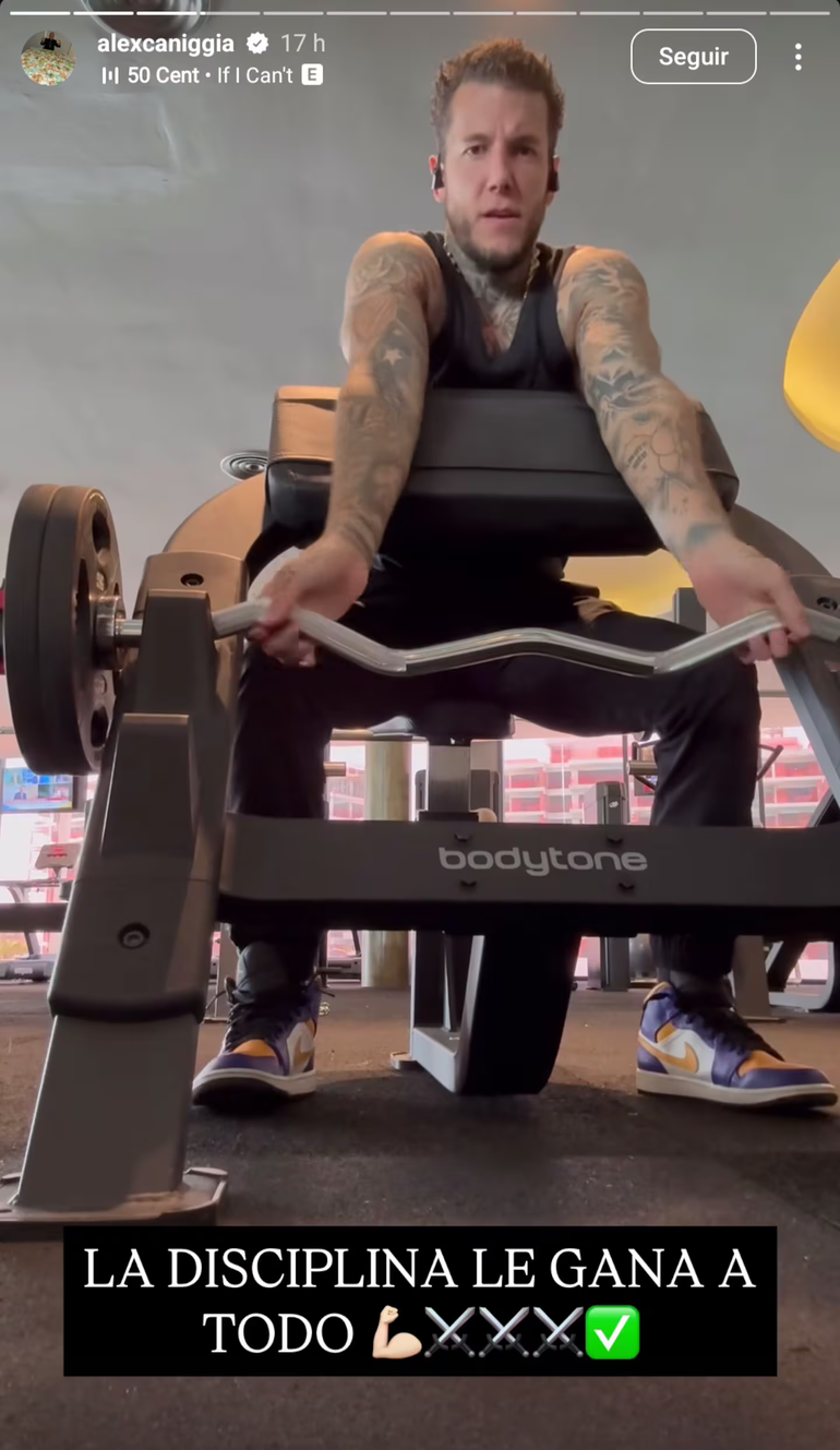 A través de su perfil de Instagram, el mediático publicó varias fotos en las que dejó ver que encontró su refugio en la actividad física. “Supérense día a día, gente”, les aconsejó él. En sus historias mostró parte del entrenamiento que hace todos los días y se sacó fotos en el espejo del gimnasio. “La disciplina le gana a todo”, aseguró Alex mientras usaba una de las máquinas del lugar.