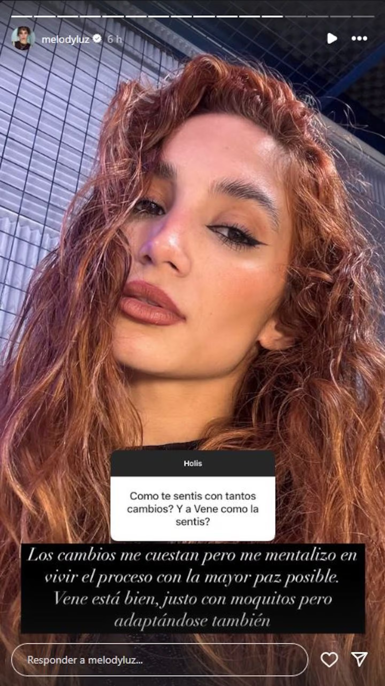 Hace varias horas, Melody Luz conversó con sus seguidores de Instagram y uno de sus fans le consultó: “¿Cómo te sentís con tantos cambios? ¿Y a Vene, cómo la sentís?”. Ante esa consulta, la bailarina decidió abrir su corazón y exponer públicamente cómo son sus días tras anunciar que ya no sigue en pareja con Alex Caniggia.