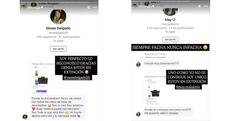 Ya visiblemente repuesto tras la ruptura amorosa con la bailarina, Alex se mostró coqueteando con sus fanáticas. Esto lo subió el conductor en sus historias de Instagram, mostrando capturas bastante calientes de conversaciones que mantenía con las seguidoras que le contestaban las historias.