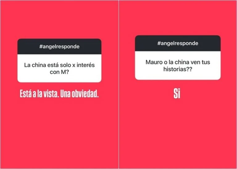En uno de sus últimos 'Ángel responde' de Instagram, alguien le preguntó si pensaba que la China Suárez estaba con Mauro por interés y él fue muy sincero: "Está a la vista, una obviedad". Luego, sumó otro dato que terminó de demostrar que al conductor le importa poco y nada lo que los protagonistas piensen de él ya que otro usuario preguntó si la actriz y el futbolista miraban sus historias y él dijo que sí.