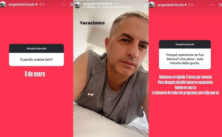 En su clásico #Ángelresponde, el conductor fue consultado por sus seguidores respecto a la sorpresiva salida de Marixa Balli. “Por qué realmente se fue Marixa? Una pena. Mirarla daba gusto", le escribió una de sus seguidoras a Ángel de Brito, por lo que se animó a contar la verdad sobre su situación.