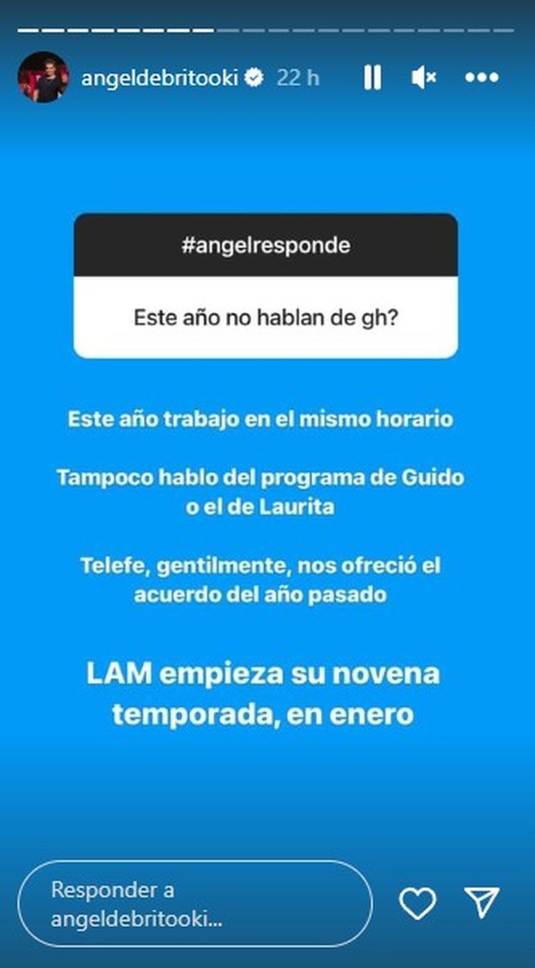 A pesar de esto, Ángel afirmó que recibió una oferta para hablar de la actual edición: “Telefé, gentilmente, nos ofreció el acuerdo del año pasado. LAM empieza su novena temporada en enero".