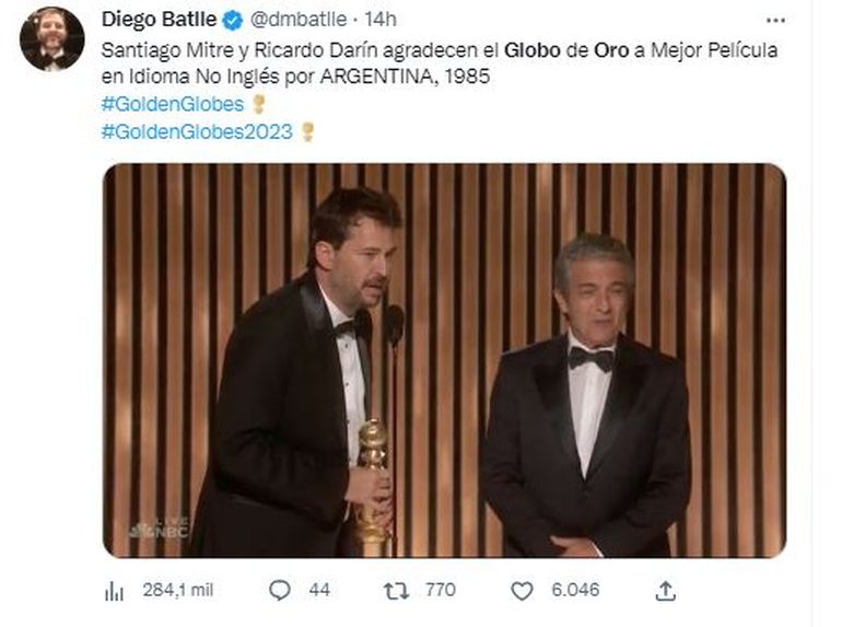 Con el antecedente en 1986 de "La historia oficial", de Luis Puenzo, la cinta se llevó el Globo de Oro a la Mejor película en lengua no inglesa, terna en la que se impuso por sobre la alemana "All Quiet on the Western Front", la belga "Close", la surcoreana "Decision to Leave" y la india "RRR".