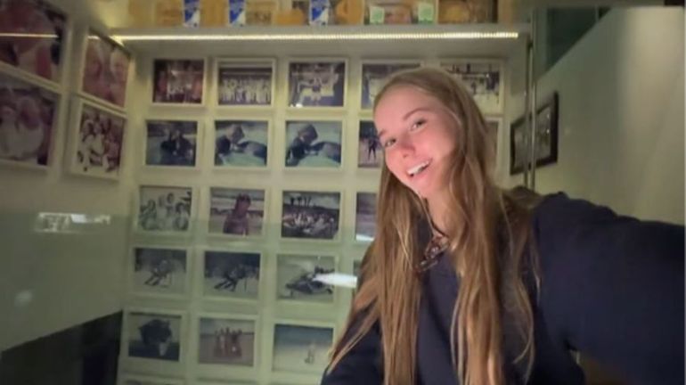 En uno de los videos que subió la joven de 15 años se puede ver un pasillo con un gran cuadro en la pared que vas desde el techo hasta el piso, el diseño que se observa es una ciudad y tiene relieves a partir de detalles en dorado.