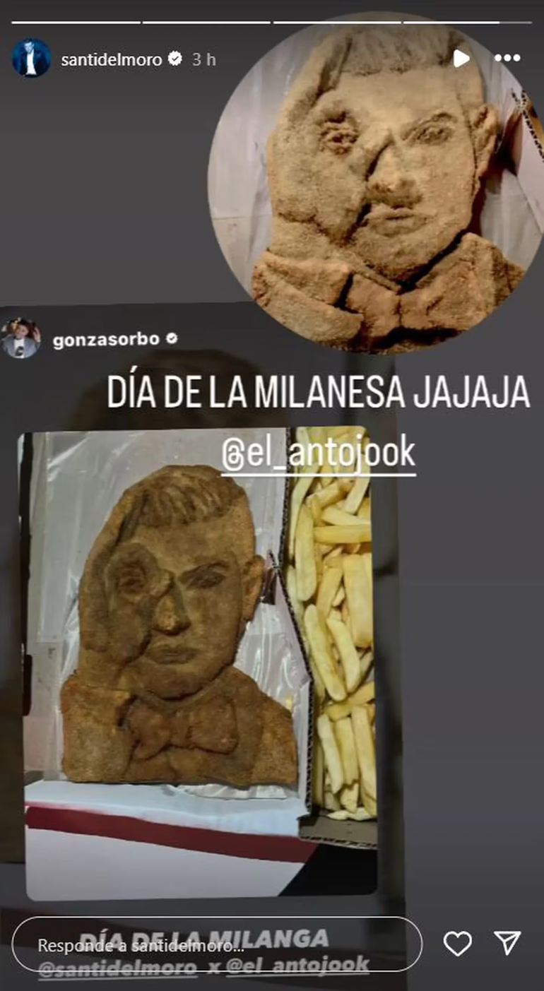 Santiago del Moro se sorprendió por completo al ver que un bodegón había hecho una milanesa con la forma de su cara. Sin poder creer el nivel de fanatismo, el conductor de Gran Hermano compartió con sus seguidores en redes sociales el plato que prepararon en su honor.