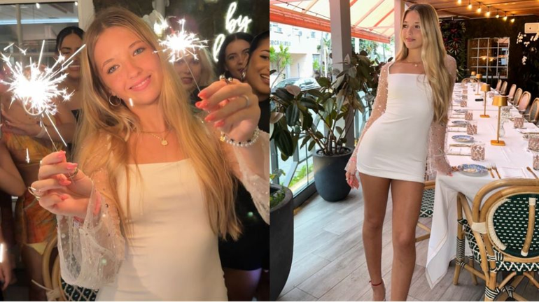 A través de su cuenta de Instagram, la adolescente compartió fotos y videos de su última fiesta de cumpleaños dónde lució su look total white: un vestido al cuerpo con mangas transparentes y brillos. Además llevó el cabello suelto y un maquillaje muy natural.