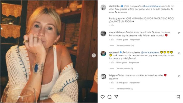 Conmovida por el bello mensaje, Mora Calabrese le respondió el posteo con mucha ternura: “¡Gracias amor de mi vida! Te amo. Los amo. ¡Por ustedes soy la persona más feliz en este mundo!”.