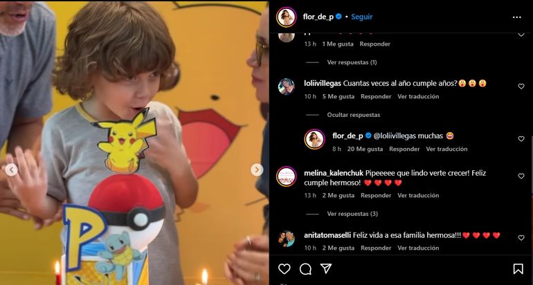 Al ver que había pasado casi dos semanas entre el festejo con la torta de Lionel Messi y este con la decoración de Pikachu, en los comentarios bromearon con Flor Peña: “¿Cuántas veces al año cumple años?”. A lo que ella respondió también divertida: “Muchas”.