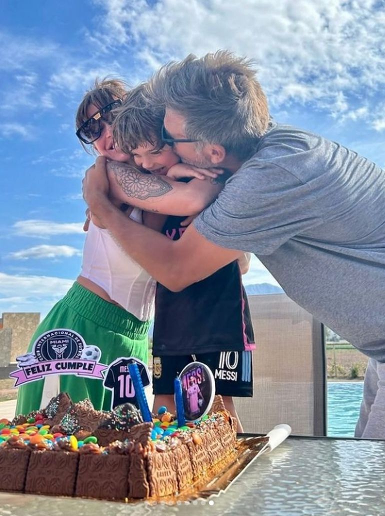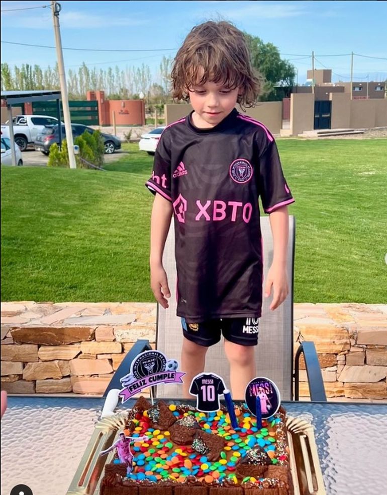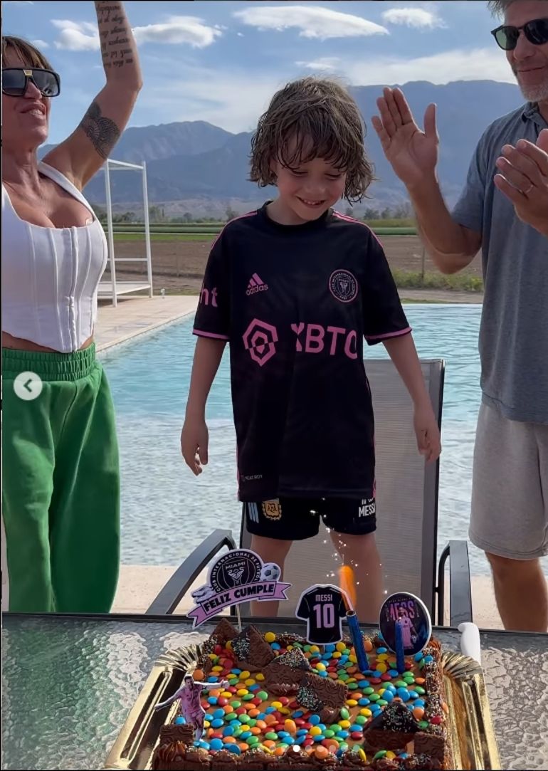 Para celebrar la familia viajó a San Juan por lo que allí recibieron el cumpleaños de Felipe. Ante el fanatismo del pequeño de 7 años por el mejor jugador de la historia, su madre decidió hacerle una torta que haga alusión al equipo en el que actualmente juega. Es por eso que se lo pudo ver pidiendo los deseos y apagando las velitas con la camiseta del Inter de Miami y una torta a tono con stickers del 10.