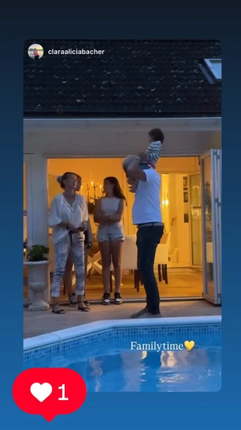 Entre los momentos destacados que mostró en redes, sobresale una tierna escena en la que Cruz, su hijo menor, aparece en brazos de su tía Clara durante una visita a un establo con caballos. Las imágenes transmiten la tranquilidad de la vida en el campo austríaco y la alegría de los más pequeños explorando la naturaleza. También se los vio compartiendo un almuerzo al aire libre junto a la piscina, en un entorno que parece sacado de una postal.