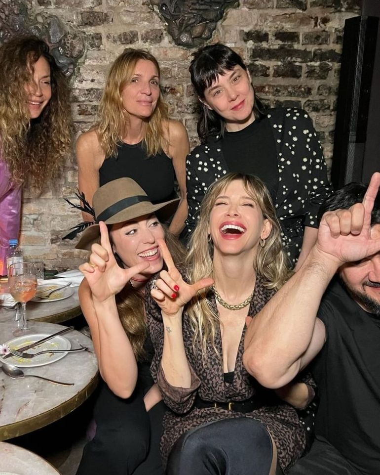 Se trató de una mesa rodeada de amigos, con velas, platos vegetarianos y tablas de sushi que degustaron con tragos que fueron parte del escenario de una alegre fiesta. El look que eligió Guillermina Valdés fue de un camisaco marrón con estampado de hojas en que combinó con una pollera y bucaneras negras en punta. Le sumó como complemento un cinturón que marcaba su figura.
