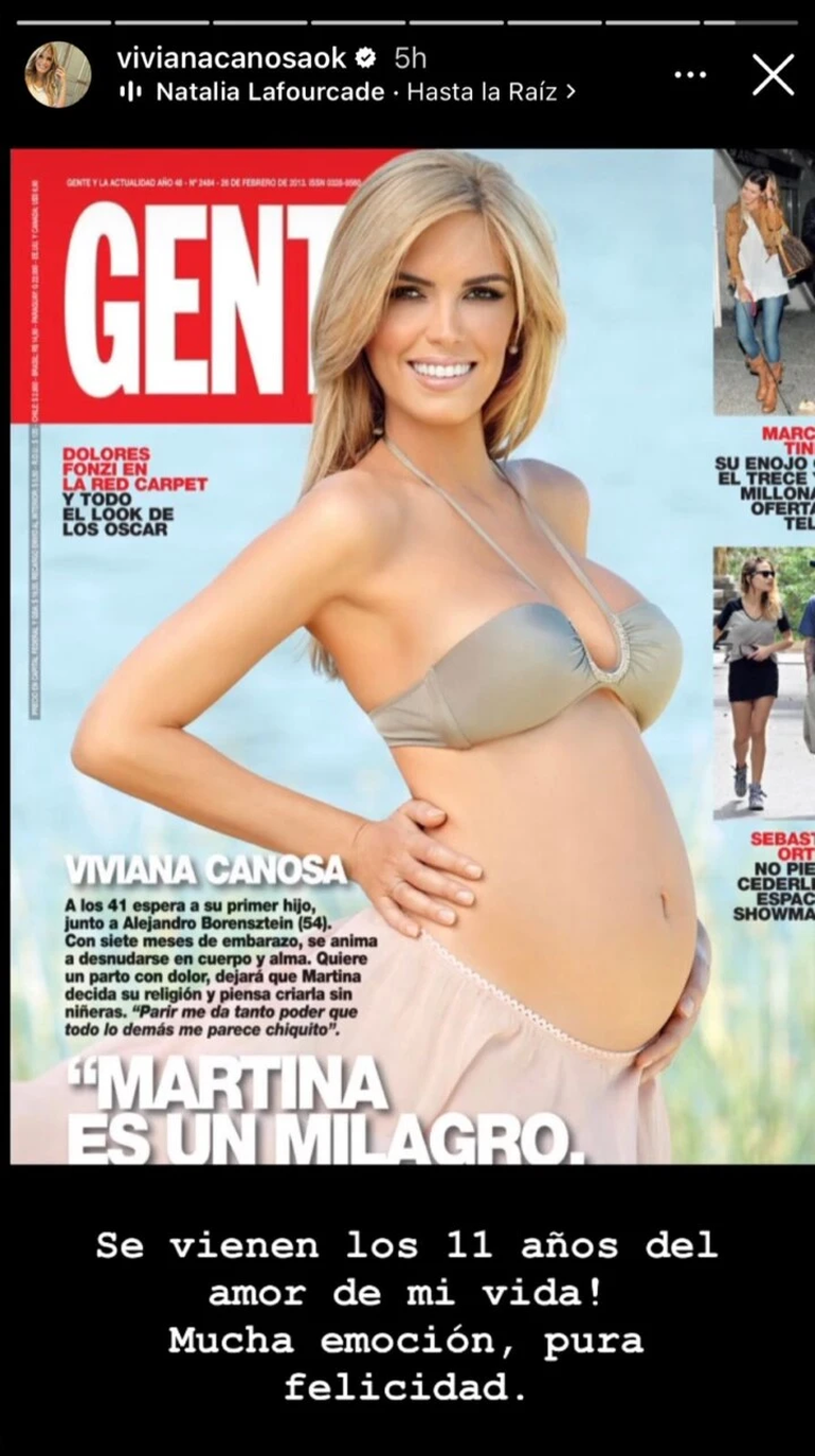 Días antes del cumpleaños de su hija, Viviana Canosa subió a sus historias de Instagram imágenes del especial y artesanal regalo que ella le estaba preparando a Martina. "¡Se vienen los 11 años del amor de mi vida! Mucha emoción, pura felicidad", anunció la conductora sobre una tapa de revista Gente con ella embarazada de su hija.